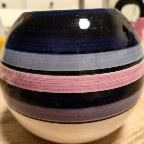 Kotimaista käsityötä, Savipaja Päivi Väätäisen valmistama upea ja ehjä keramiikkaesine. Minä olen käyttänyt tätä kasvin suojaruukkuna. Korkeus 18 cm.