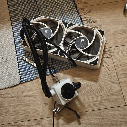 EKWBn 2 tuulettimen vesijäähdytin tietokoneeseen. Letkuliittimet ja tuulettimien ruuvit mukana.