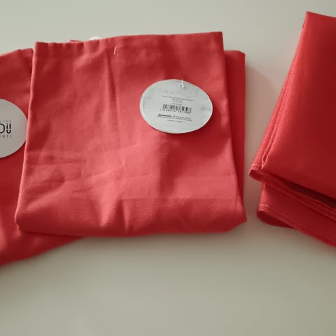 Kaksi uutta näyttävää sisustustyynynpäällistä ja sohvapöydälle mitoitettu kapea kaitaliina samasta kankaasta ( tämä ei mitenkään tarkalla mitalla tehty, vaan extrana jäljellejääneestä kankaasta )