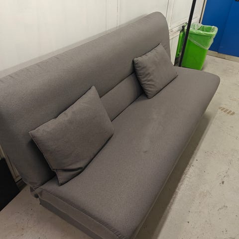 Istuinosat aitoa nahkaa tausta keinonahkaa. Siniharmaa vuodesohva.