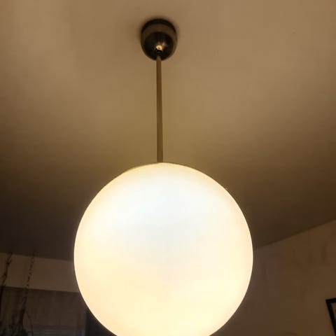 Hieno 60-70-luvun kattovalaisin. Akryylivarjostin, jonka sisällä lasilieriö.