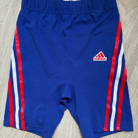 Adidaksen shortsit, raidoissa pienesti jotain jälkeä, muutoin oikein siistit. Koko xs, reiluhko mielestäni, menee s kokoisellekin.
