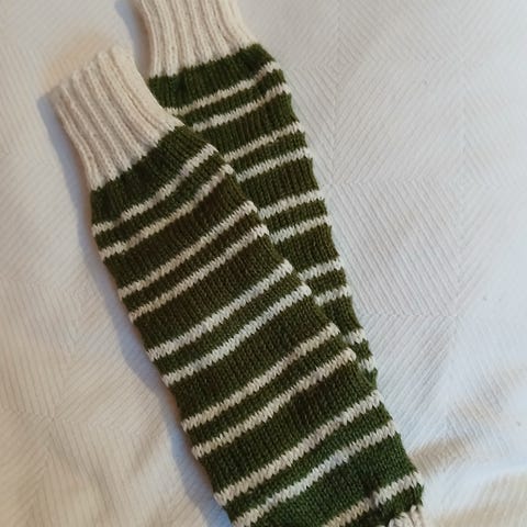 Lämpimin ajatuksin neulotut säärystimet, 39 cm. Valkoinen 80% villaa, raidat pehmeää mohairlankaa 70% villaa. Hinta 18 e + postimaksu 5,50 e. Lähetän säärystimet sinulle, voit maksaa tililleni saatuasi ne.