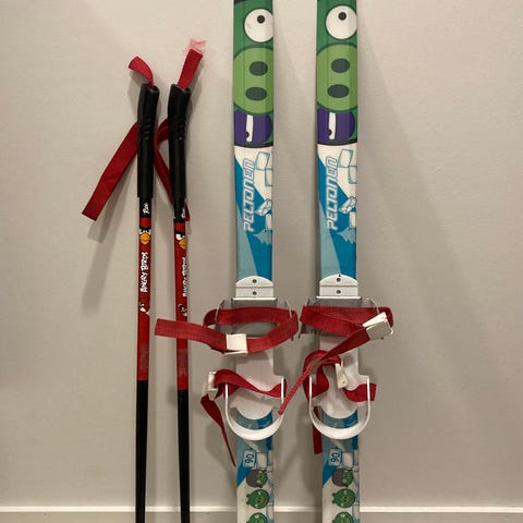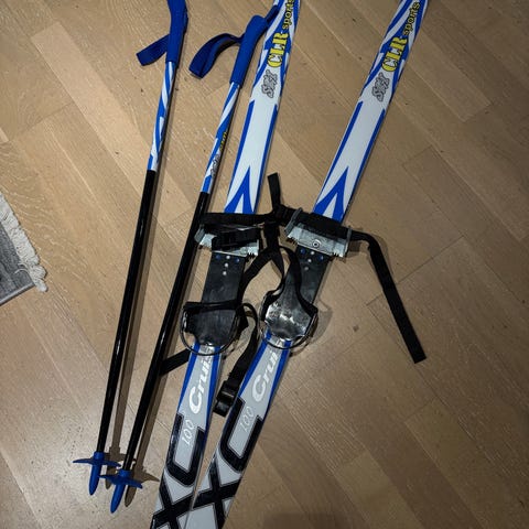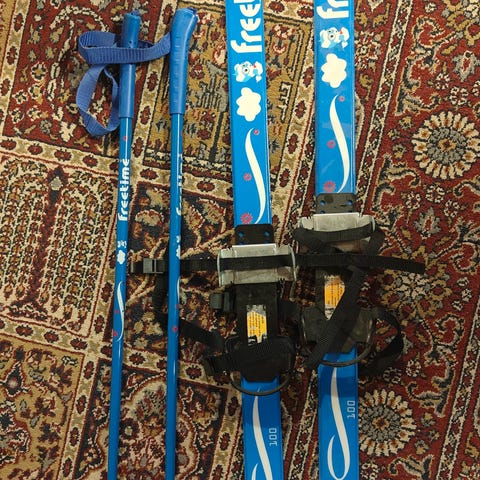 Voiteluvapaalla pitopohjalla olevat 100 cm ensisukset ja sauvat. Sukset kiinnitetään kenkiin. Nouto tai lähetys 19,90 e.