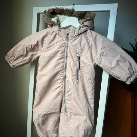 Hyväkuntoinen ja söpö H&M:n talvihaalari, koko 74. Haalarissa on kätevät käännettävät hihansuut ja lahkeensuut, jotka voi taittaa peittämään kädet ja jalat.