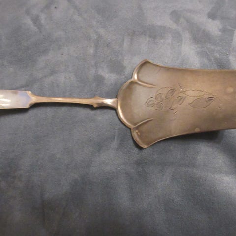 Hopeinen ruusupäinen pieni otin, liekö kalaa varten valmistettu, pesä kullattu, hyväkuntoinen
