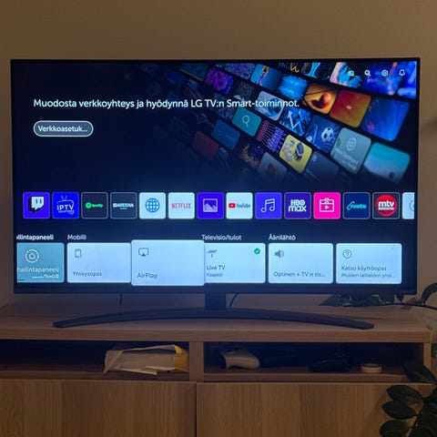 Moderni Smart televisio, joka sopii monenlaisiin katselutarpeisiin. Tyylikäs musta muotoilu.