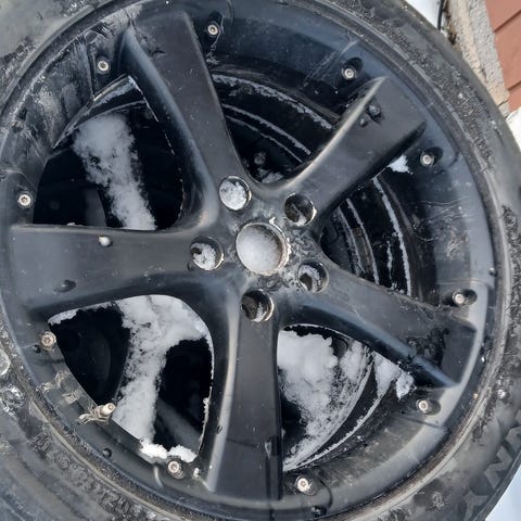 VW vanteilla olevat 16" piikkirenkaat 4kpl. Olivat Mersun alla minulle tullessa. Piikkejä irronnut mutta pitoa silti hyvin.