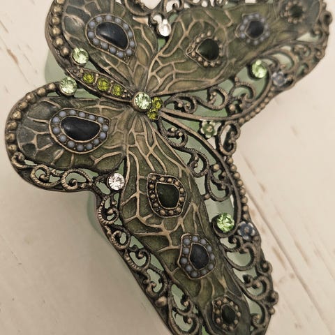 Kaunis valkoinen puurasia lasisella kannella ja lasiseinämillä. Pohja on kokonaan puuta. Kannen lasissa on sana Jewelry (koruja) ja sivulaseissakin on kauniita koristekuvioita lasissa.