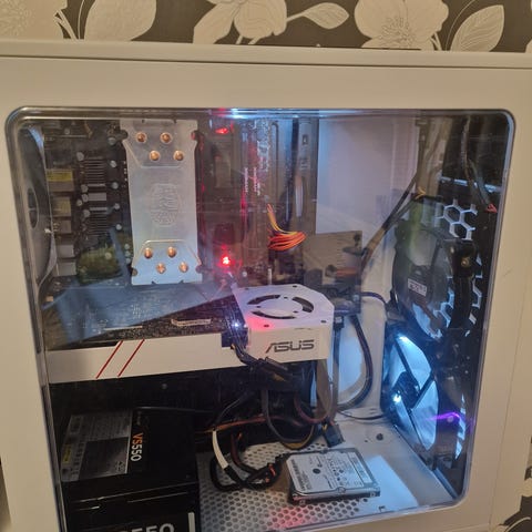 Myydään hyväkuntoinen 3 vuotta käytössä ollut pelitietokone. Pöllyt pyyhitty silloin tällöin ei oikein kerää pölyä onneksi. Ainut ongelma että kone alkaa joskus hieman hurista jos pelaa pitkään tai kone on todella kauan päällä mutta kone ei kuumene yhtään tai pätki tai mitään. Eli mielestäni kone on virheetön en ole kohdannut ikinä suurempaa ongelmaa tämän koneen kanssa. Pyörittää kaikkia pelejä kun laittaa asetukset viisaasti niin ei kuormitu kone.
