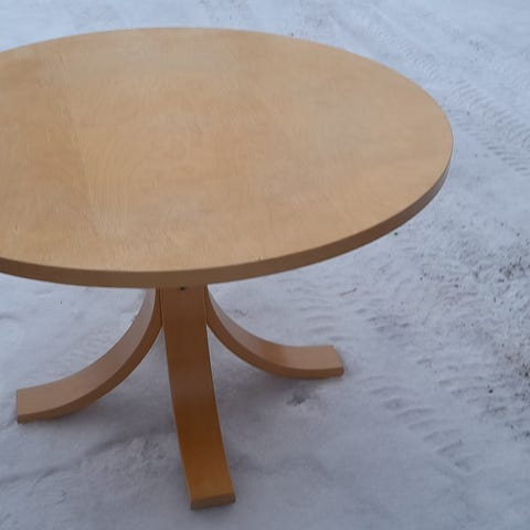 Myydään pyöreä sohvapöytä. Halkaisia 90cm. Teräsjalat (ei voi purkaa). Korkeus 63cm. Ei varauksia 2h pidemmäksi aikaa, eikä tinkauksia.