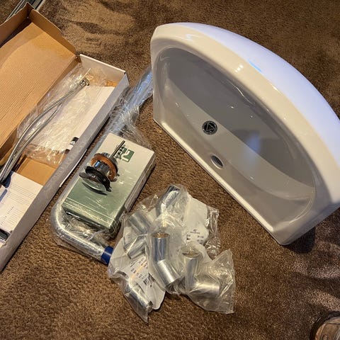 Stalan Combo XL -mallinen jämäkkä allas ja Oras Safira 1039 -hana pesukoneventtiili.