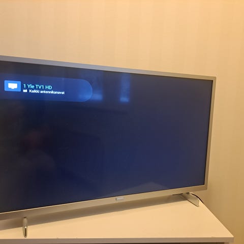 Philips 32PFS6402/12 LED-televisio, jossa 32 tuuman näyttö. Televisiossa on HDMI-, USB- ja verkkoliitännät sekä tuki DTS HD- ja Dolby Audio -äänitekniikoille. 5 vuotta vanha, kaikki toimii