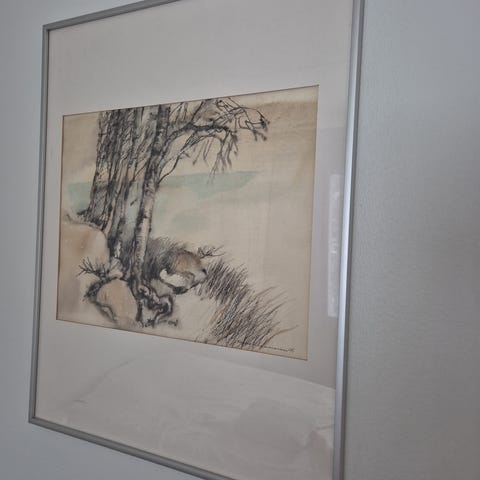 Maunu Lappalaisen maalaus " Kokemus" tempera vuodelta 1995 Koko 70x55 cm.