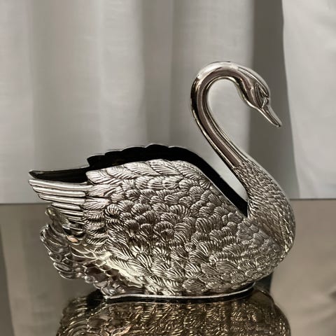 Kuusi kpl tukevia hopeoituja Joutsen-lautasliinapidikkeitä. Yhden paino 62 g . Nouto Tesomalta sovitusti tai postitus mieluiten ToriDiilillä. Hinta setillä 25 €.