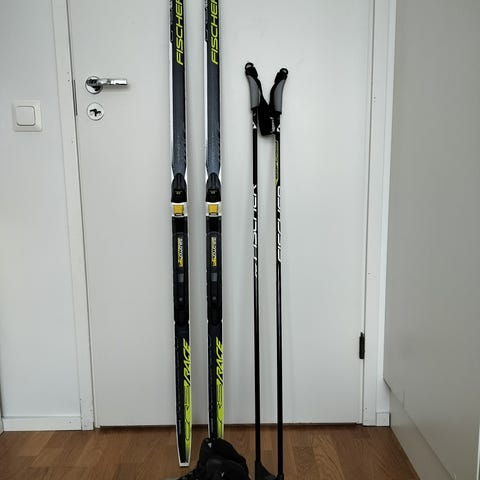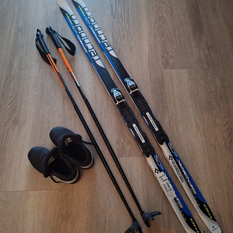 Fischer suksipaketti 147cm ja Atomic 140cm (pitopohja), Monon koko 35, SNS siteet, Oneway sauvat 105cm. Ei ihan viimeisintä uutta, mutta kyllä näillä pääsee hiihtoa vielä kokeilemaan. Varusteet ovat ehjät.