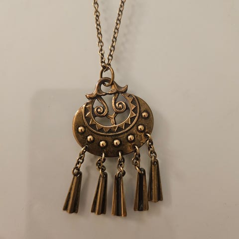 Vintage Kalevala kuutar riipus pronssia, pienempi koko. Ollut kaapissa tosi pitkään, puhdistamalla saisi kirkkaamman.