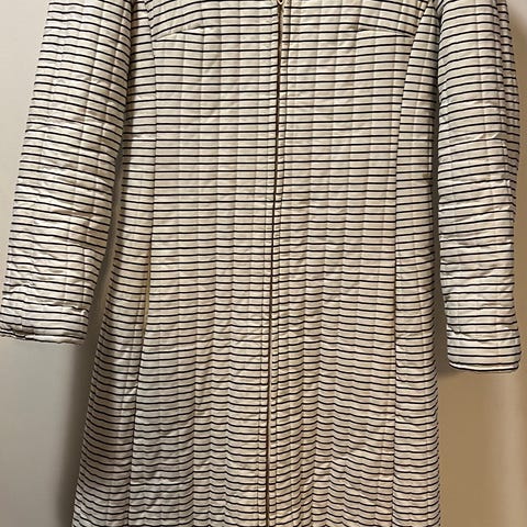 Ihana Vuokon vintage tikkitakki. Pohjaväri beige ja raidat mustat. Ei tuoksuja eikä tahroja. Siisti ja hyväkuntoinen, vaikka on jonkinverran käytetty. Pidetty hyvänä! Pesty ja huollettu asianmukaisesti. Kuvista näkee kunnon hyvin. Tästä kotimaisen Vuokon tyylistä pitävälle vielä pitkään käyttöön klassinen takki.