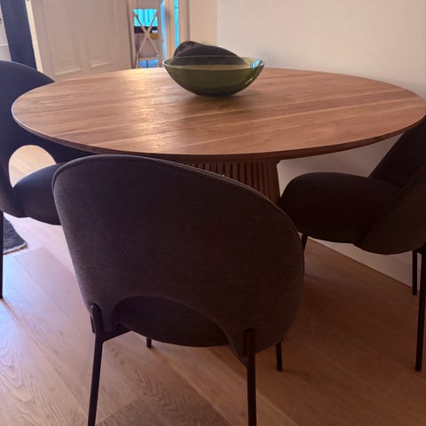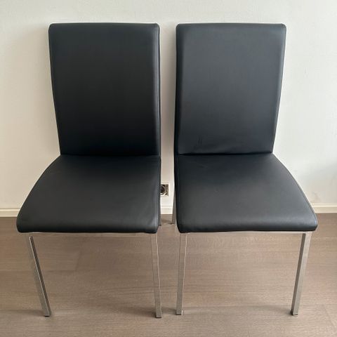 Myydään kaksi siistikuntoista ja modernia tuolia. Neutraali harmaa verhoilu ja puiset jalat sopivat hyvin monenlaiseen sisustukseen, esimerkiksi ruokapöydän tuoleiksi tai työtuoleiksi. Tuolit ovat tukevat ja mukavat istua, ja ne ovat olleet vähäisellä käytöllä. Myydään yhdessä. Koira talous.