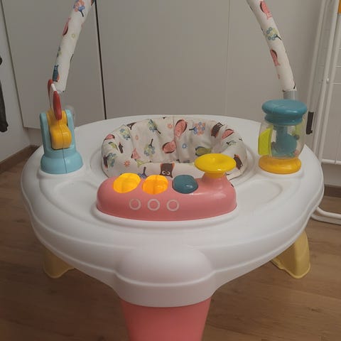 Myydään vauvan/taaperon puuhapöytä/aktiviteettipöytä. Jalat saa irroitettua. Laulaa ja soittaa musiikkia.