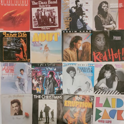 Myydään 16 kpl ulkomaisia 7 tuuman vinyylisinglejä vuosilta 1981-1988.