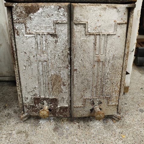 Vanha takan luukku pönttöuuniin. Mitat korkeus noin 32cm leveys noin 28 cm. Materiaali rauta. Kulkeutuu Vaajakoski-Jyväskylä suuntaan.