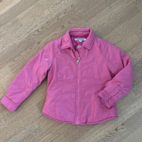 Koko 104 cm mutta meillä käytetty, kun sisävaatteissa ollut koot 110 - 116 cm eli mielestäni takki on reilua mitoitusta