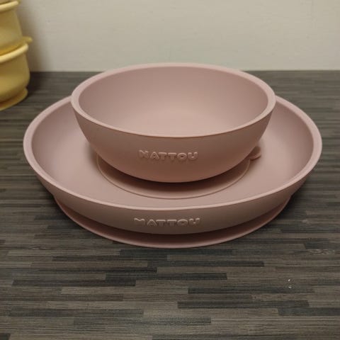 Vähän käytetyt imukupilliset silikonilautaset (everyday baby/lässig) sekä kaksi harjoituskuppia.