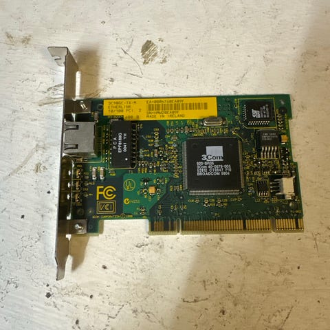 Toimiva PCI -liitäntäinen verkkokortti, piirinä hyvin yleinen Realtek RTL8139D.