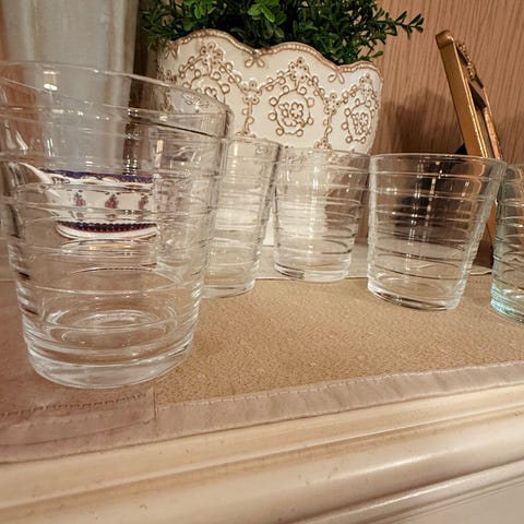 Myydään klassiset juomalasit yhtenä pakettina. Yhdessä lasissa minimaalinen sirulohkeama, jota en ole käytössä edes huomannut. Kyseessä on vanhempaa tuotantoa olevat täysin kirkkaan väriset lasit.