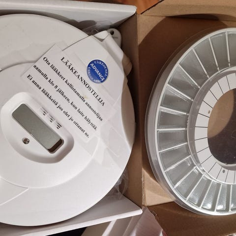 Automaattinen, pyöreä ja hälyttävä lääkeannostelija, joka helpottaa lääkkeiden ottamista oikeaan aikaan erityisesti henkilöille, joilla on muistivaikeuksia. Se muistuttaa ottamisesta ääni- ja valomerkein, kunnes lääke on otettu. Annostelijan ovh 255 e lisälokerikko 38 e