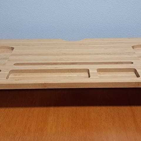 Musta läppärikoroke, tukevaa tekoa. Valmistettu metallista. Jaloissa säätömahdollisuus kolmelle eri korkeudelle.