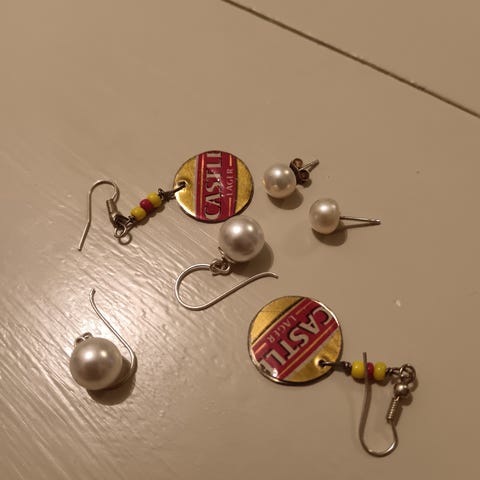 Allergiavapaata materiaalia olevat korvakorut. Kullanväriset renkaat, pienemmän halkaisija 2,8cm, suuremman halkaisija 4cm, pituus yhteensä 7cm.