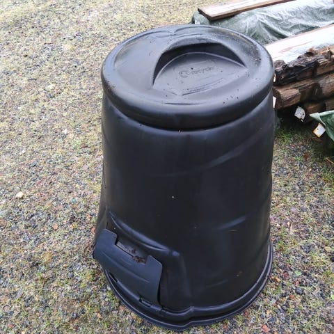 Biolan Pikakompostori 220, joka soveltuu talousjätteiden ympärivuotiseen kompostointiin. Kompostorissa tällä hetkellä tavaraa, mutta ei ole "käynnissä". Kannen lukituskumi rikki, mutta saa ostettua varaosina uuden. Kompostorin sivussa hieman maalia, ei vaikuta käyttöön.