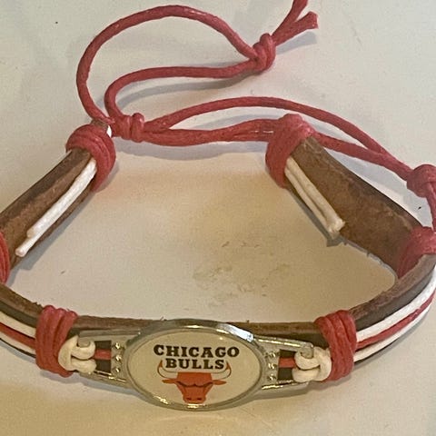 Chicago Bulls rannekoru jossa joukkueen logo ja nimi. Musta väri, materiaali ei tiedossa. Hintapyyntö 10 €.