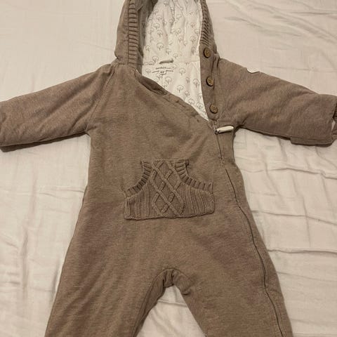 Erittäin hyväkuntoinen Newbie haalari. Kerman värinen/vaalean beige. Hupussa söpöt korvat. Koko 62cm. Hihat ja lahkeet saa käännettyä joko auki tai töppösiksi ja tumpuiksi.
