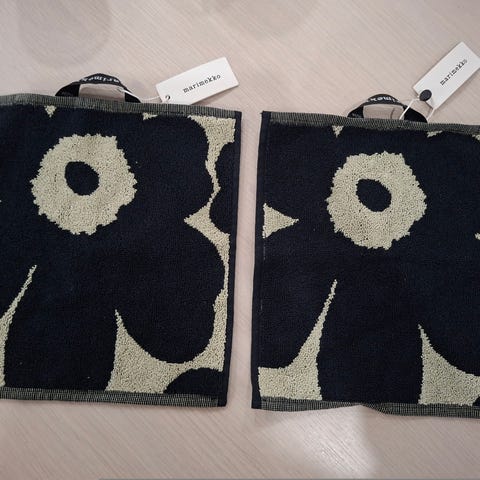 Marimekko Unikko pyyhkeet 30×30cm 2kpl,hinta yhteensä 14€. Toridiili,nouto Sääksjärveltä tai postit +6.90€