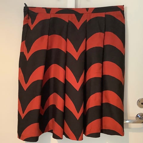 Marimekon v 2007 mallistosta, samettinen Samu-Jussi Kosken suunnittelema suora puuvillasamettinen puolihame. Vetoketju vasemmalla sivulla, vuorillinen, Vuori 60%asetaatti, 40%viskoosi.
