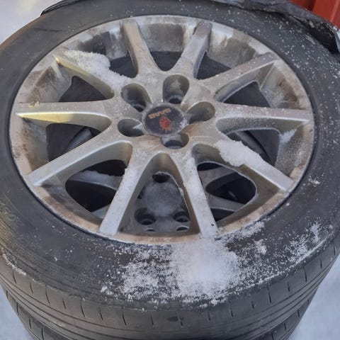 Hyväkuntoiset nastarenkaat, 4 pulttisilla peltivanteilla, sopii ainakin Saabiin. Reilusti kulutuspintaa jäljellä 8-9 mm.