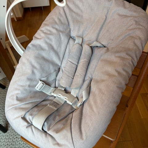Stokke Tripp Trapp Newborn set vauvanistuin harmaalla pehmusteella. Istuimessa on turvavyö ja lelukaari kuuluu hintaan. Sopii käytettäväksi Stokke Tripp Trapp -tuolin kanssa. Istuimen saa säädettyä kahteen asentoon.