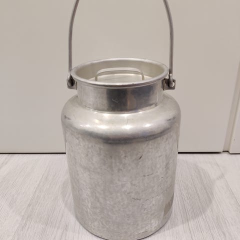 Vanha, pieni alumiininen maitotonkka, vetoisuus 1l. Vain nouto.