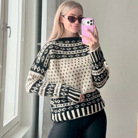 Käsinkudottu villaneule, koko S. Käyttämätön. Materiaali 65 % alpakka, 28 % polyamidi, 7% villaa. Pituus 60 cm, kainalo-kainalo 56 cm.