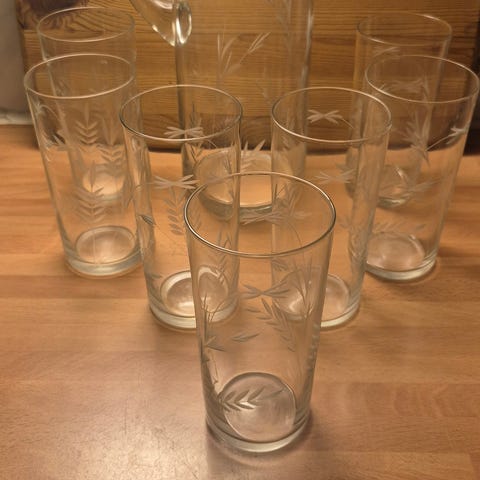 Varaudu kesän tuloon; rantateemainen setti, neljä lasia ja mehukannu. Kaikki osat ehjiä ja kuviot hyvässä kunnossa. Lasien vetoisuus kolmisen desiä. Nouto Itiksen vierestä tai postikulut M-pakettina ostajalle. Nopea postittaja. Yhdistän paketit pyynnöstä. Katso muutkin ilmoitukseni, viljalti retroa ja vintagea sekä vuosien varrella keräiltyä ihanaa tavaraa astiahullun muuttomyynnissä.
