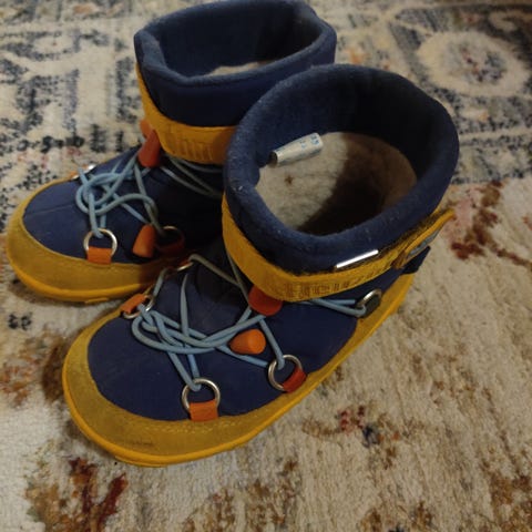 Affenzahn snowboot paljasjalkakengät talveen. Koko 24, sisämitta 15,8cm. Muuten siisti kunto, mutta sisäsyrjissä pientä rispautumista lenkeissä (ks kuva). Savuton, eläimetön ja hajusteeton koti. Vain nouto.
