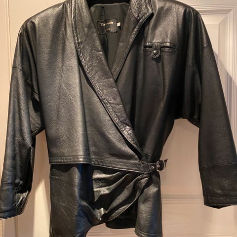 Lähes käyttämätön musta nahkatakki, hoikka malli