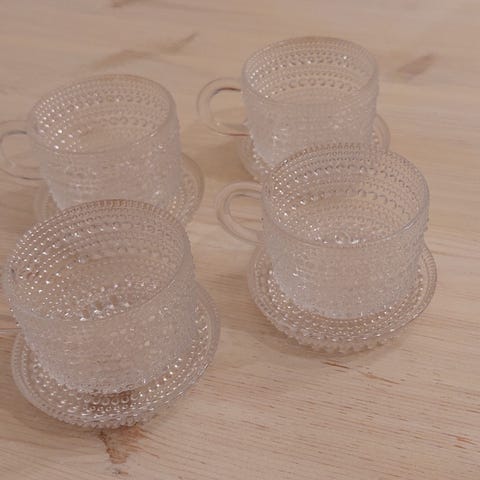 Nuutajärvi Kastehelmi kahvikuppi ja lautanen kirkas 4kpl sarja.