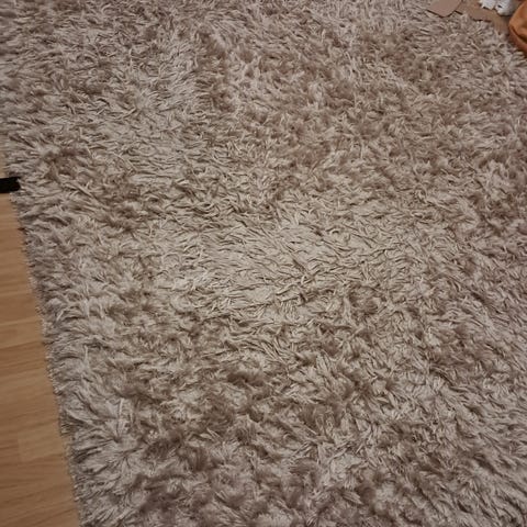 Iso, hyvä ja vähän käytetty puuvilla matto. Koko 160 x 230cm. Raidat beige, vaalea ja musta/tummanruskea.
