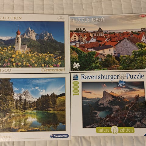 Myyd. 5kpl palapelejä, 1kpl 2000 palaa, 4kpl 1000 palaa, 5€/kpl tai 25€ 5 kpl. tied. Toriviestillä