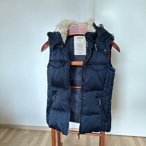 Zaran beige, pitkä toppaliivi. Vetoketju plus painonapit. Huppu, taskut. Käytetty 2-3 kertaa. Puhdas, siisti, ehjä. Vain nouto. Tarvittaessa kulkeutuu omien menojeni mukaan Turussa ja Kaarinassa.