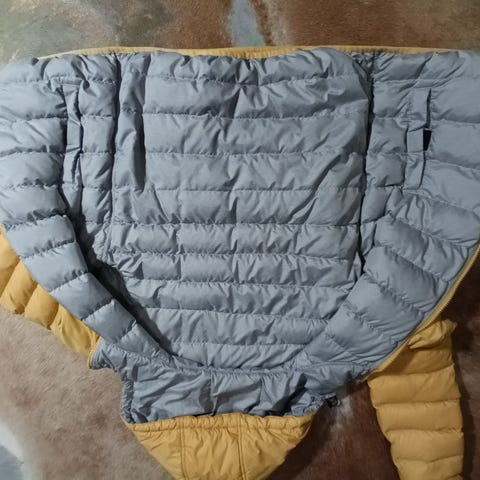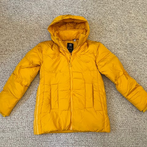 Erittäin hyväkuntoinen pirteän keltainen Superdryn untuvatakki.